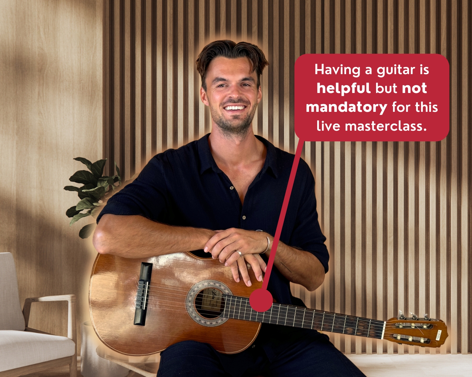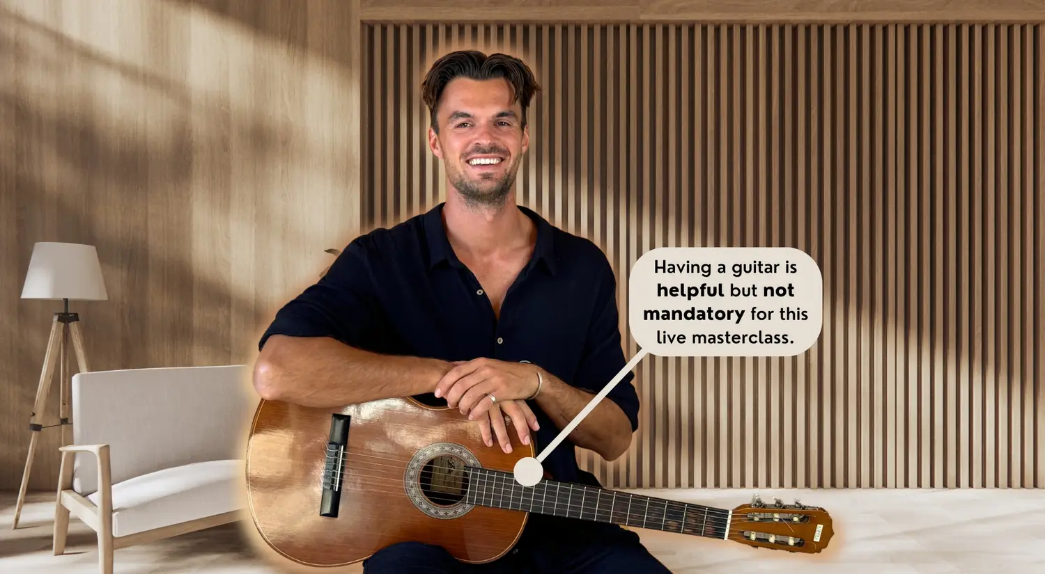 Yes, the masterclass is completely free, there is nothing to pay! There will be an offer at the end of the masterclass for people who want to continue learning with the Guitar Flow Method, but it's a zero pressure offer.